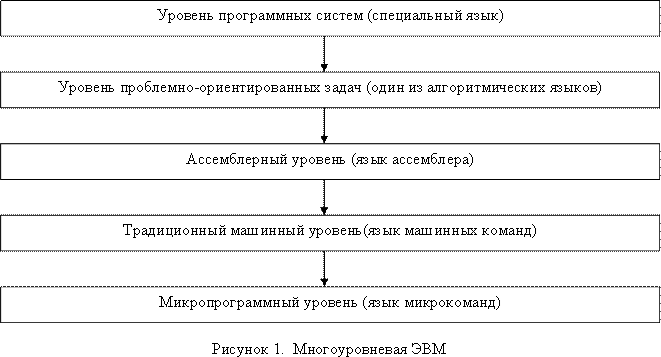 различными уровнями языков программирования. Возможные уровни программирования ЭВМ показаны на рисунке.