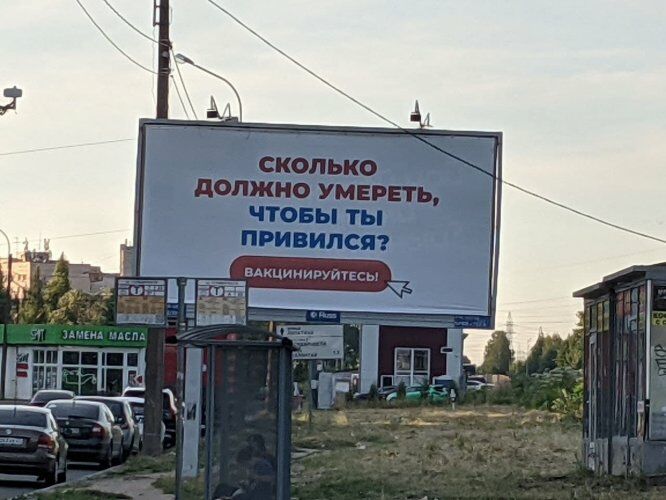 Вот ещё несколько призывов: «Хватит бояться, сделай прививку!», «Сколько должно умереть, чтобы ты привился», «Вакцинация спасает жизни. Не беречь себя и близких — это безумие». Такие баннеры появились в Москве, Екатеринбурге, Томске, Архангельске, Ростове-на-Дону и других регионах.