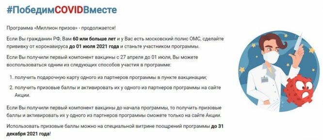 Такая программа стартовала в Москве под девизом #ПобедимCOVIDвместе. Все условия можно прочесть на скрине ниже. Кстати, инициатором программы стал мэр Москвы Сергей Собянин.