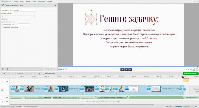 На примере урока биологии разберем, как записать происходящее на экране и затем обработать ролик во встроенном редакторе.