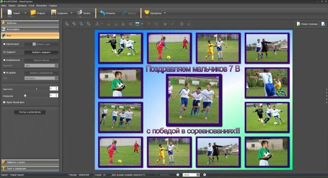 Простые коллажи можно смонтировать с помощью онлайн-сервиса. Но десктопные приложения дают больше возможностей для творчества. Наиболее удобно использовать для оформления школьного стенда ФотоКОЛЛАЖ. Создавайте проекты с нуля или используйте готовые шаблоны, добавляйте стилистические эффекты, рамки и украшения, графические элементы. Вы можете бесплатно скачать программу, чтобы на деле оценить ее возможности.