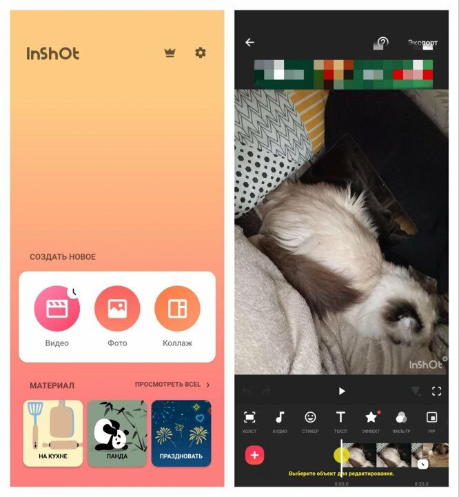 Приложение доступно на Андроид и на Айфон. Встроенные шаблоны и стикеры позволяют пользователям быстро создавать креативные и динамичные ролики. Есть функции настройки скорости и обратного воспроизведения, замена фона, работа со слоями. InShot также включает инструменты для редактирования фотографий и создания слайд-шоу.