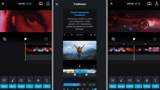 Продвинутый видеоредактор для мобильных устройств. Доступен для iOS и Android. Интуитивные инструменты редактирования, такие как кадрирование, поворот и цветокоррекция, делают процесс простым и удобным. Здесь есть своя библиотека с эффектами, переходами, музыкой. Имеется каталог анимаций для текста, картинок, ключевых кадров, фона.