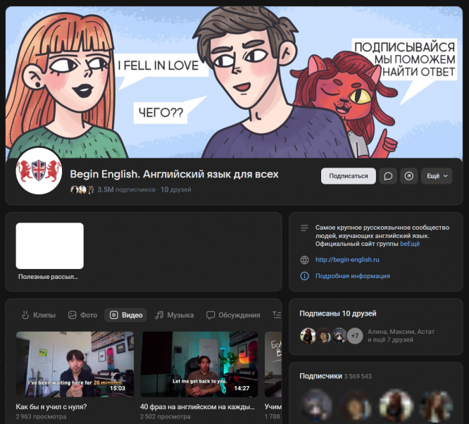Самое крупное сообщество в ВК для изучающих английский. Здесь вы найдёте полезные материалы для всех уровней: грамматика, лексика, идиомы, аудиоматериалы и советы по улучшению разговорных навыков. Дополнительно авторы публикуют новости из англоязычного интернета на русском языке, но при этом вычленяют несколько слов и фраз, которые переводят на английский.