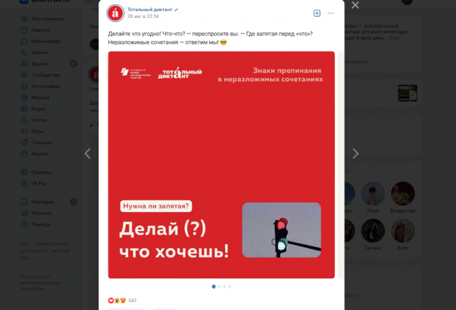 Паблик для тех, кто хочет проверить свою грамотность и улучшить знания русского языка. Здесь публикуются новости о подготовке и проведении международной акции, а также полезные материалы: правила орфографии и пунктуации, тренировки по правописанию. Подписывайтесь, если хотите повысить уровень грамотности.