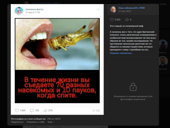 Сообщество, посвященное разоблачению фейков и мифов, распространяемых в социальных сетях. Здесь вы найдете забавные и провокационные посты, которые критикуют популярные паблики и их необоснованные утверждения. Например, узнаете, какие цитаты не говорил Бисмарк, был ли Николай II на фронте и сколько насекомых средний человек съедает за всю жизнь.