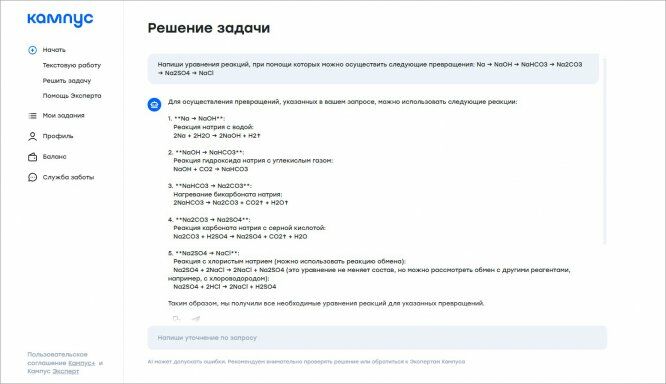 AI-напарник по изучению любых предметов: химии, физики, математики, географии, истории, обществознании и так далее. ИИ решит задачу, поможет написать контрольную или курсовую работу, используя только проверенные источники. Если вы хотите глубже изучить вопрос, AI-ассистент выступит в роли эксперта и разъяснит сложные моменты.