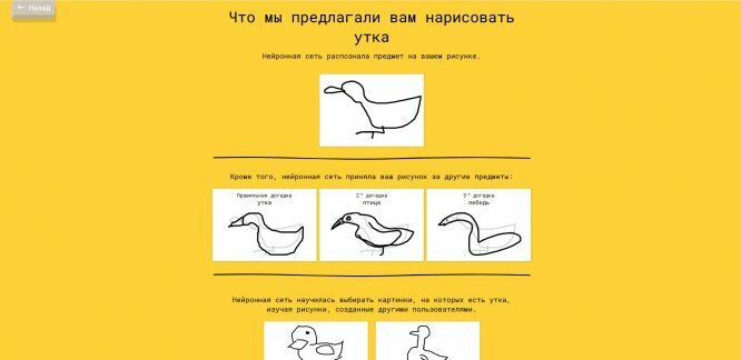 Хотите не только развлечься, но и принять участие в обучении нейросети? Тогда заходите на экспериментальный сайт Quick, Draw! Вы должны нарисовать за 20 секунд заданный объект, а задача ИИ — угадать, что это за предмет. В конце игры вы сможете узнать, по каким признакам велось распознавание. Особенно интересна эта игра будет для студентов творческих специальностей — дизайнеров, художников-иллюстраторов. Отточите свое мастерство наброска и внесите свой вклад в технологии машинного обучения.