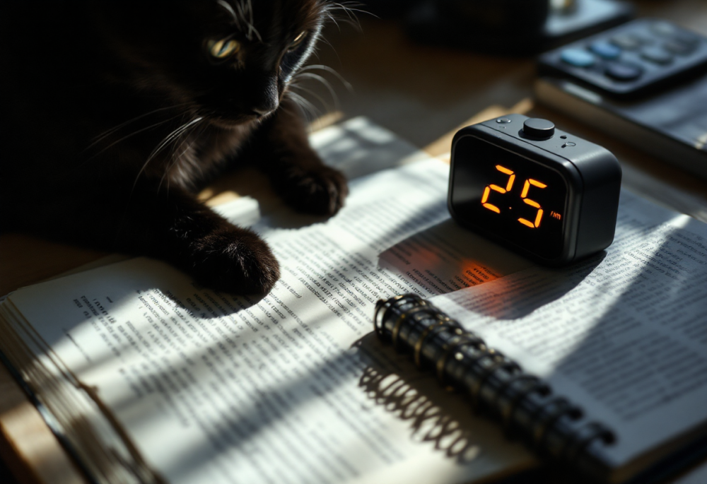 Договоритесь с собой заниматься всего 25 минут. Таймер — ваш лучший друг. 25 минут концентрации, затем обязательный 5-минутный перерыв. После 4-х «помидоров» — длинный перерыв. Такой подход не пугает мозг, ведь он знает, что скоро отдых.Создайте «ритуал начала».