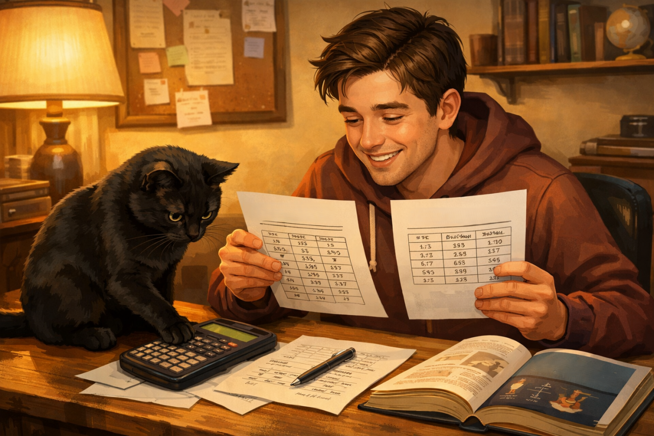 Пересчитай формулы вручную или в калькуляторе. Даже если ты использовал Excel или онлайн‑калькулятор, могла закрасться ошибка в скобках или порядке действий.