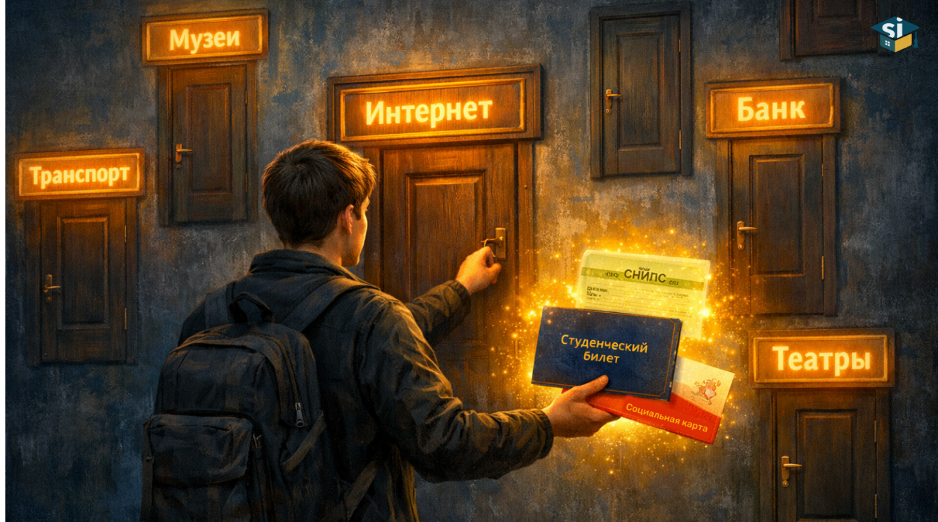 Социальная карта студента — это документ, подтверждающий статус учащегося и дающий право на скидки в транспорте, музеях, магазинах и госучреждениях.