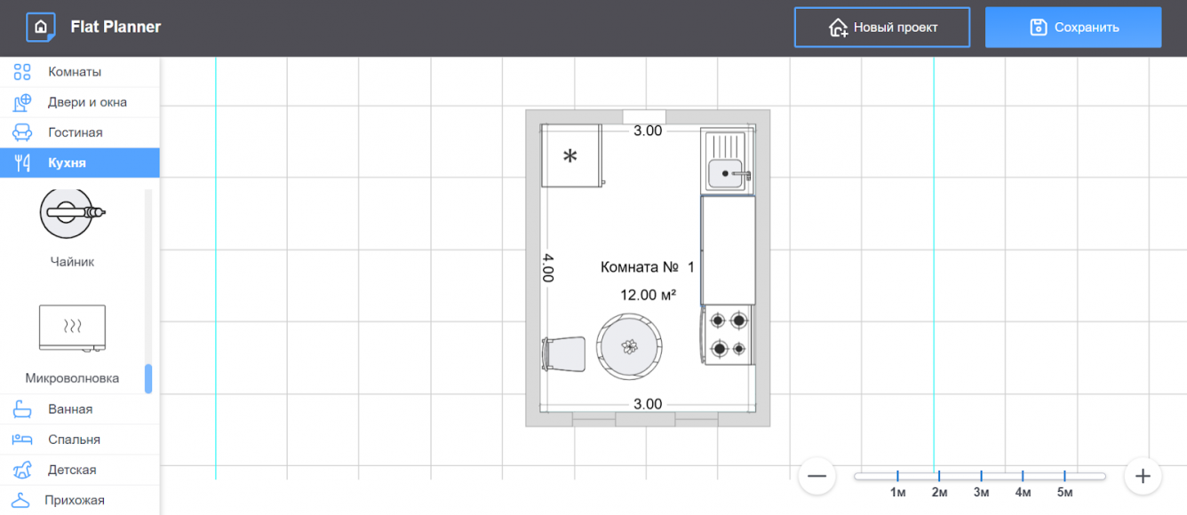 Программа для дизайна на русском языке, предназначенная для создания детальных проектов. Позволяет рисовать помещения с нуля или по готовому чертежу. Если есть план квартиры или дома, его можно использовать в качестве подложки при размещении перегородок и стен. Масштаб будет подобран в самом начале работы, постоянно сверяться с линейкой не придется.