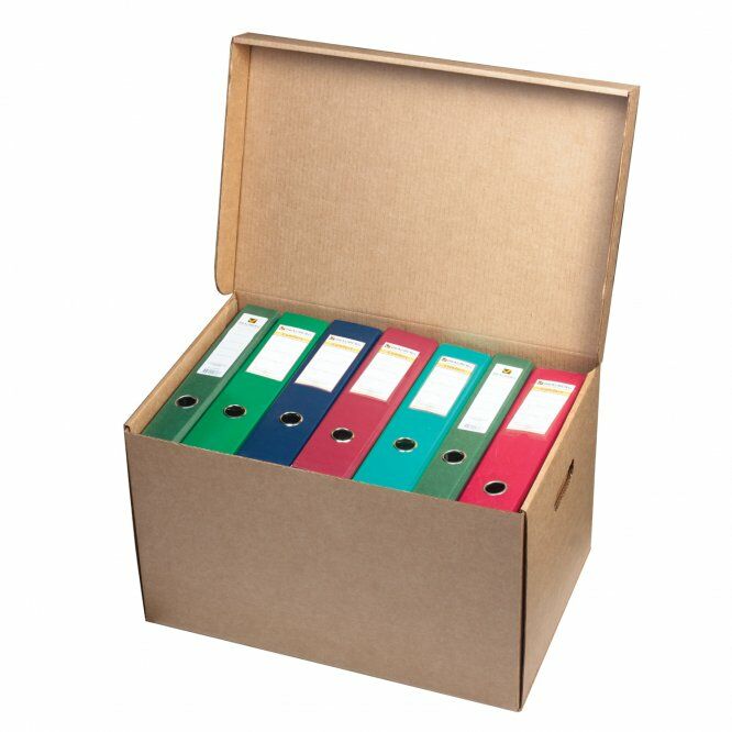 - Ящик для архивного ящика: этот картонный ящик используется для хранения документов для транспортировки их во время переезда, но его также можно использовать ежедневно для хранения файлов и бумаг. Например, он имеет формат 51,5 x 35,2 x 26 см.