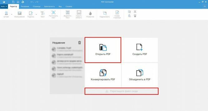 1. Нажмите кнопку «Открыть PDF» и выберите файл из папки. Либо перетащите его в окно софта из Проводника.