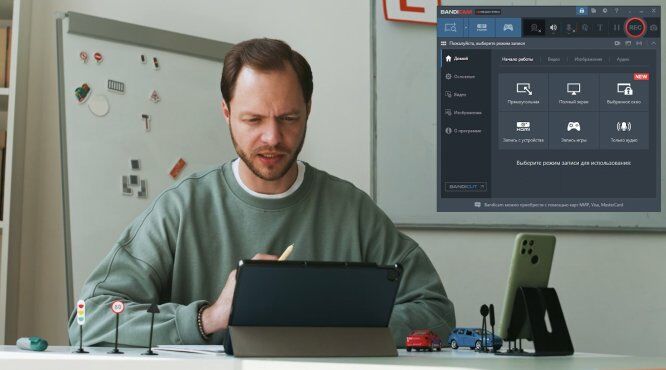 Bandicam – это программа для записи видео с экрана ПК и внешних источников — веб-камеры, смартфона и других. Снимает в полноэкранном режиме, из отдельной области или выделенного окна. В программе можно записать комментарии с микрофона, возможен и паралелльный захват системного звука.