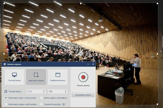 создание запланированной записи — вы заранее настраиваете скринкаст на нужные дату и время проведения лекции, урока, вебинара, конференции;