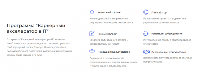 Помощь в трудоустройстве: Акселераторы часто предоставляют помощь в поиске работы после окончания обучения. Это может включать в себя резюме-ревью, подготовку к собеседованиям, контакты с работодателями и др.