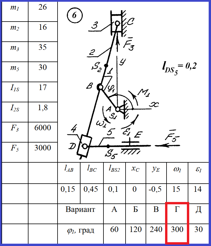 👉ДЗ №1 + №2: Структурный + Кинематический анализ и Силовой анализ рычажного механизма Варианта 6Г (Угол 300 град)
