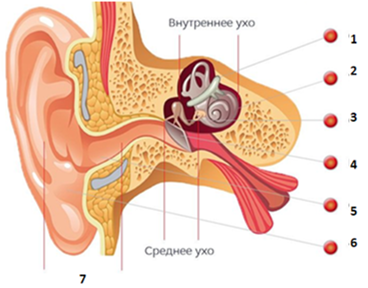 Например: 1 – молоточек, 2 – барабанная перепонка и т.д.