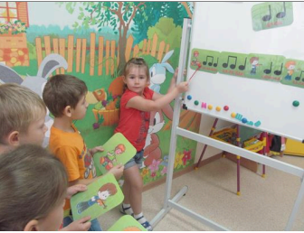 В настоящее время уделяется большое внимание созданию музыкальной предметно-развивающей среды в детских садах. Музыкальные руководители применяют инновационные подходы и принципы к построению музыкально-игрового пространства в учреждениях. В каждой группе детского сада создаются музыкальные центры.