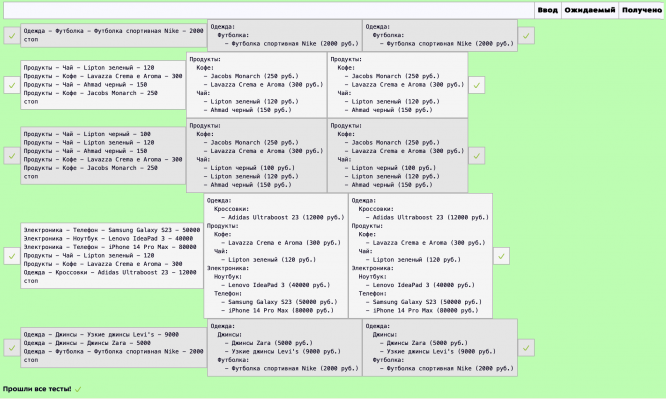 1. Каждая строка содержит информацию о товаре в формате: Категория - Подкатегория - Название товара - Цена.