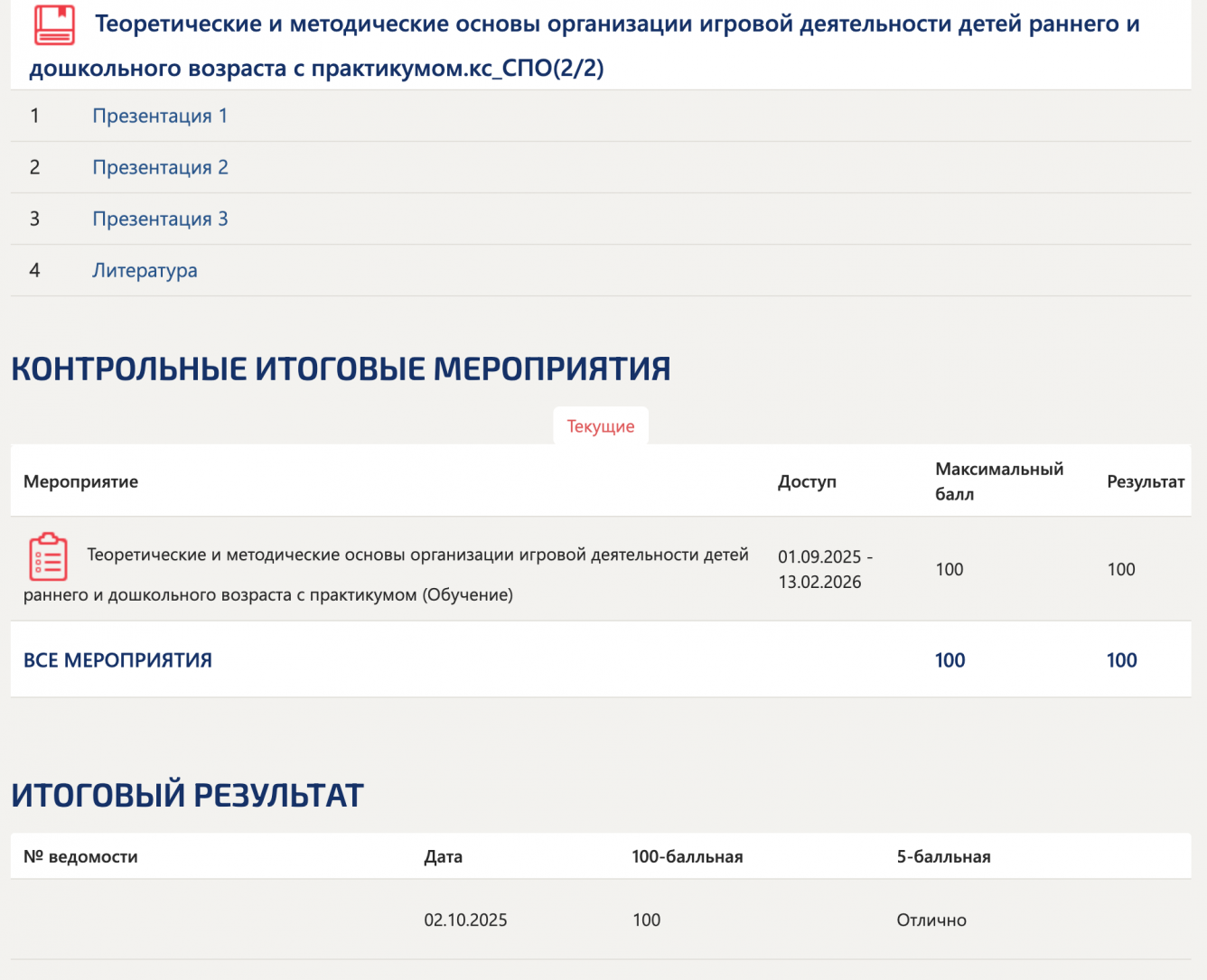 Ответы на итоговый тест "Теоретические и методические основы организации игровой деятельности детей раннего и дошкольного возраста с практикумом" в Синергии за 5 семестр. Здесь же ответы на тест с таким же названием, но предмет у теста называется "Теория и методика развития речи детей раннего и дошкольного возраста" (МДК без ИМ, но тест достпен). Сдано на 100 баллов по этим ответам. Правильность скорей всего около 95%, так как встречались вопросы с ошибкой в тесте, бывало вопросы не отмечались вообще.