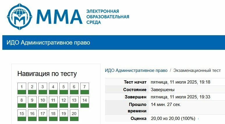 Сборник ответов к экзаменационному тесту Административное право ММА.