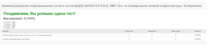 Ответы к тесту/контрольной КМ-1: Планирование сетевой инфраструктуры