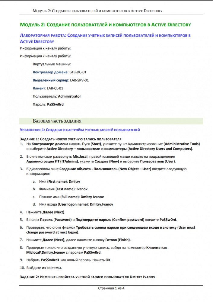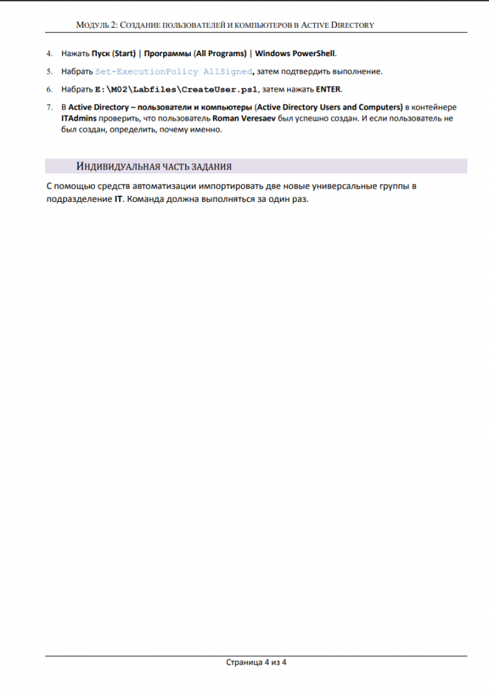 Лабораторная работа: КМ-2. Лабораторный модуль №2. Создание пользователей и компьютеров в ActiveDirectory