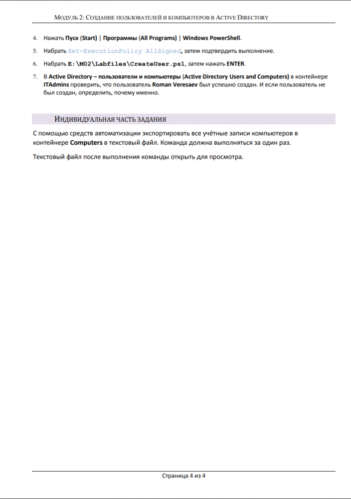 Лабораторная работа: КМ-2. Лабораторный модуль №2. Создание пользователей и компьютеров в ActiveDirectory