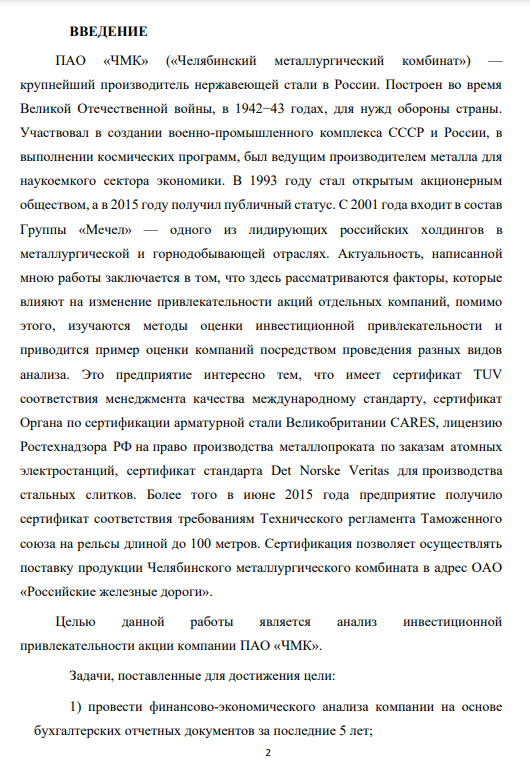 Курсовая работа: Оценка инвестиционной привлекательности акций компании ПАО "ЧМК"