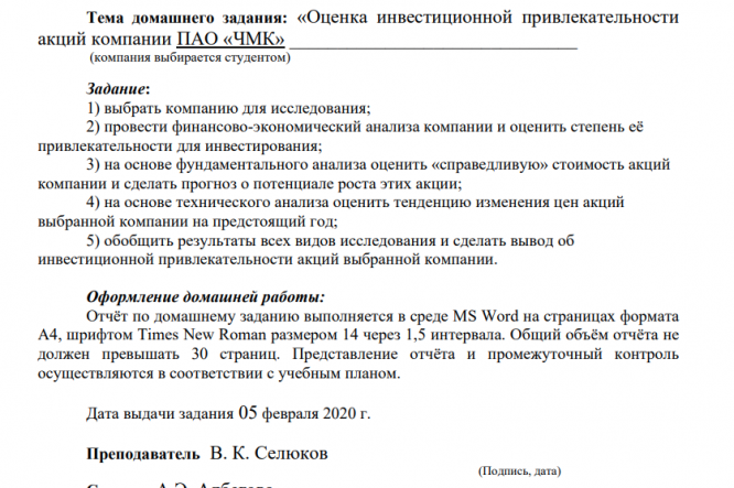 Тема домашнего задания Оценка инвестиционной привлекательности акций компании ПАО ЧМК.pdf