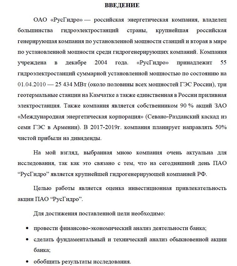 Курсовая работа: Оценка инвестиционной привлекательности акции компании ПАО "РусГидро"