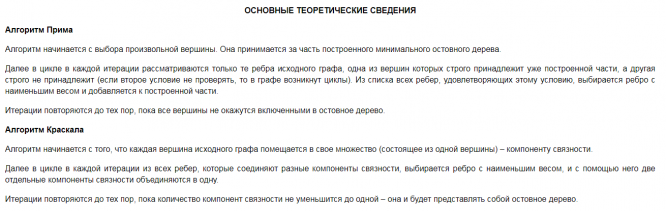 Ознакомление с вариантами реализации алгоритмов на графах на примере задачи построения минимального остовного дерева. ![]()