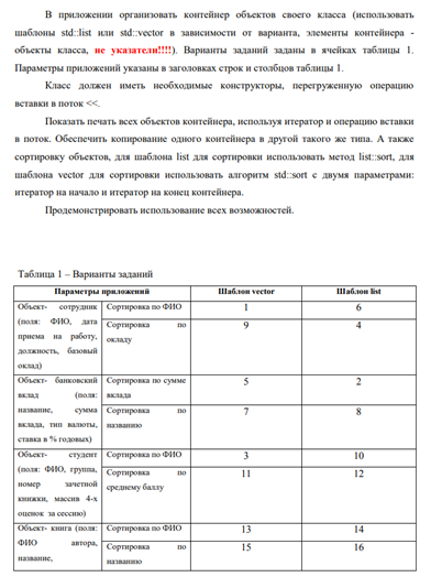 Лабораторная работа: «Использование объектов своих классов в контейнерах библиотеки STL» вариант 3