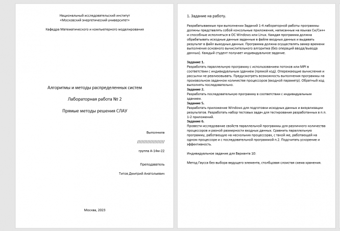 Для студентов НИУ «МЭИ» по предмету Алгоритмы и методы распределенных системЛабораторная работа № 2 Прямые методы решения СЛАУЛабораторная работа № 2 Прямые методы решения СЛАУ