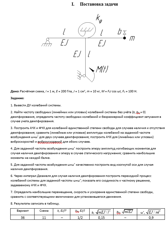 ДЗ 1: Колебания линейных систем с одной степенью свободы вариант 36