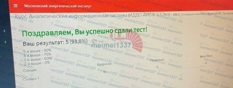Для студентов ИДДО НИУ «МЭИ» по предмету Аналитические информационные системыКМ-2. Основные понятия и функции ИС. Тестирование - 93.8%КМ-2. Основные понятия и функции ИС. Тестирование - 93.8%