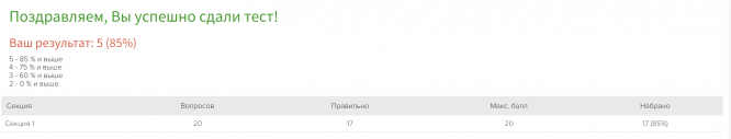 Тест выполнен на 85% (оценка 5)