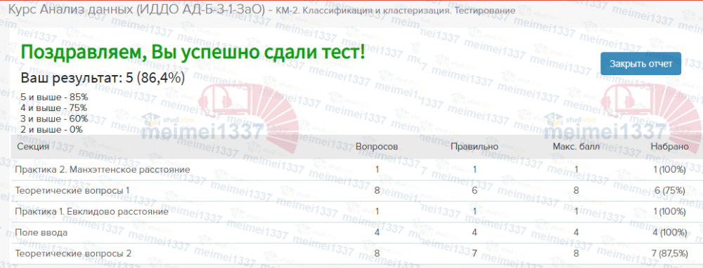 📝Помощь с тестом «КМ-2: Классификация и кластеризация» по курсу «Анализ данных» в ИДДО – гарантия результата!☑️