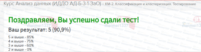 Для студентов ИДДО НИУ «МЭИ» по предмету Анализ данныхКМ-2. Классификация и кластеризация. Тестирование - 90,9%КМ-2. Классификация и кластеризация. Тестирование - 90,9%