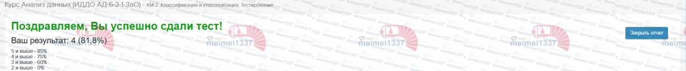Для студентов ИДДО НИУ «МЭИ» по предмету Анализ данныхКурс Анализ данных - КМ-2. Классификация и кластеризация. ТестированиеКурс Анализ данных - КМ-2. Классификация и кластеризация. Тестирование