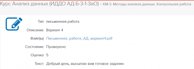 Для студентов ИДДО НИУ «МЭИ» по предмету Анализ данныхКМ-3. Методы анализа данных. Контрольная работаКМ-3. Методы анализа данных. Контрольная работа
