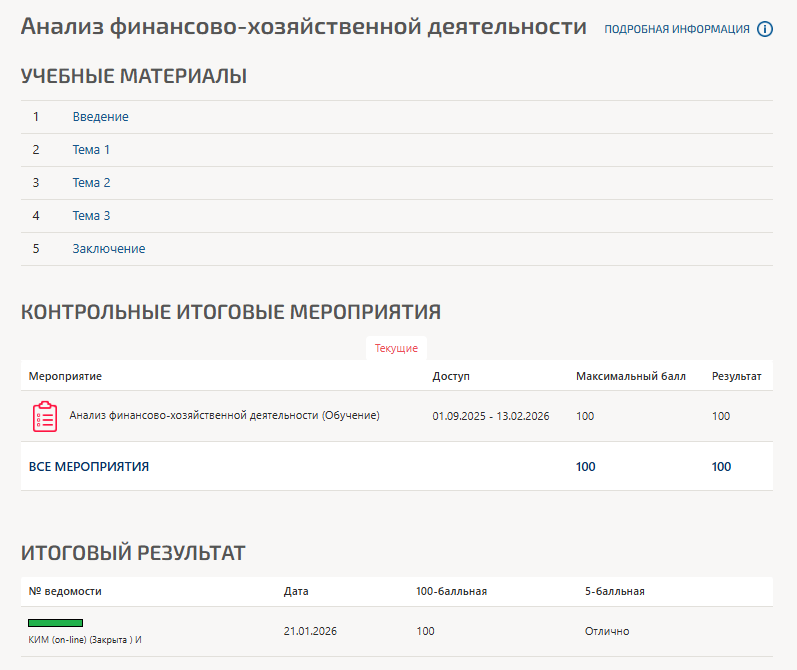 Представлены ответы на большинство вопросов по предмету "Анализ финансово-хозяйственной деятельности.ои(dor_СПО_24-055-С)". Итоговый набранный балл 100 из 100.