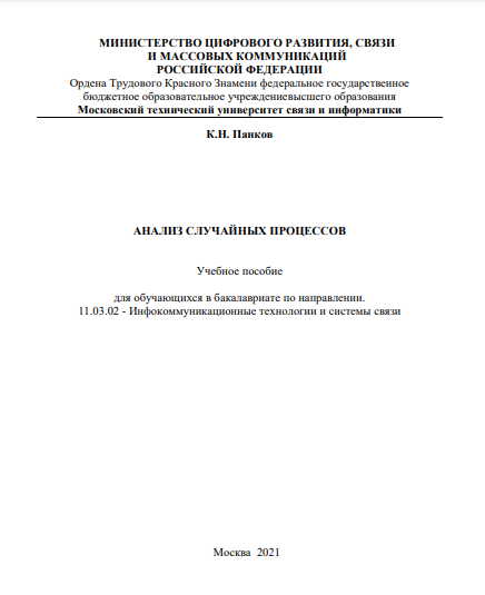 Для студентов МТУСИ по предмету Анализ случайных процессовАнализ случайных процессов учебное пособие к.н. панковАнализ случайных процессов учебное пособие к.н. панков