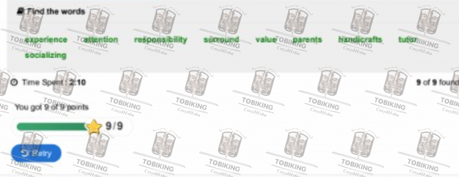 Найдите слова, связанные с профессией воспитателя/учителя в таблице ниже. Find the words experience attention responsibility surround value parents handicrafts tutor socializing.