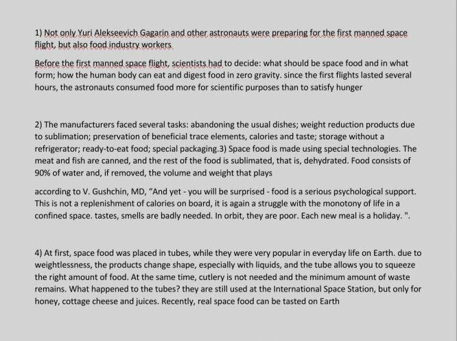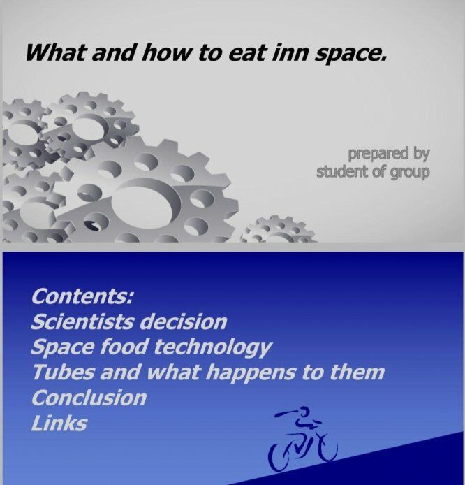 What and how to eat in Space. Презентация сдана на отлично! Есть еще и небольшое видео внутри презентации. Ниже прикрепил еще и скрин с текстом для рассказа. Скачивай и наслаждайся ;)