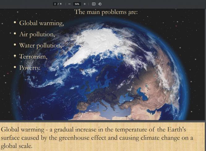 Презентация на 9 слайдов (по гост, с картинками) на тему "Global problems of the earth"