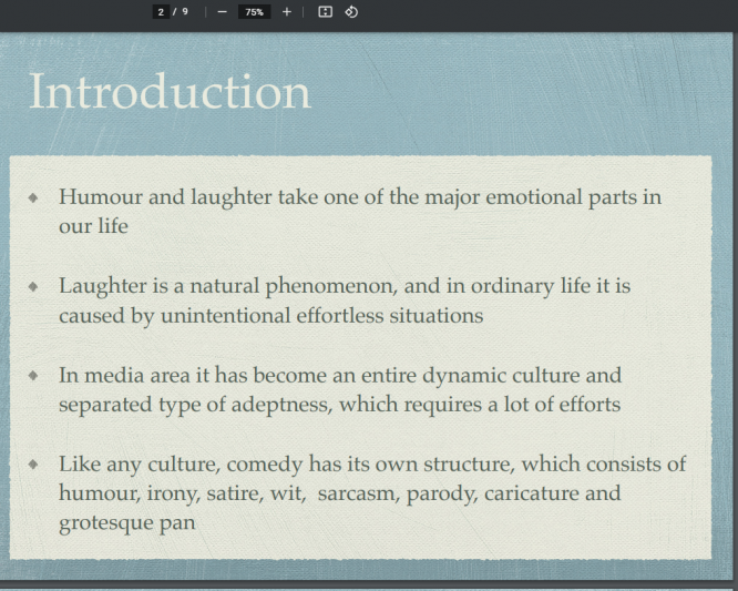 Презентация на 9 слайдов (по гост, с картинками) на тему "Humour"