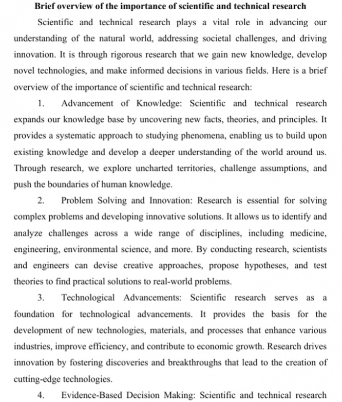 Реферат: Brief overview of the importance of scientific and technical research